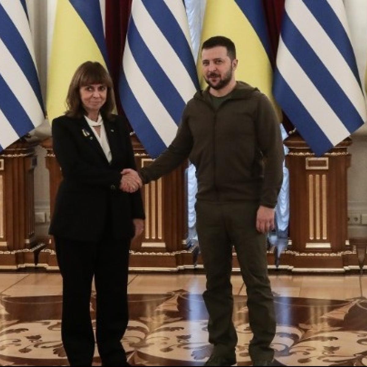 Η χιουμοριστική φωτο είναι του Κώστα Μπακογιάννη(κοίτα γκριμάτσα). Σαν να λέει, αυτός ο κοντοπίθαρος, μισορειξιά είναι ο Ζελένσκυ ο τσαμπουκάς; Σαν καρτούν από τον Μπόμπ Σφουγκαράκι. Ο πλακτόν(Ζελέσκυ) συνναντιέται με τον Καλαμάρι(Κ. Μπακογιάννη). Γενικά η θέση της Ελλάδος υπέρ της Ουκρανίας είναι γλοιώδης, κατ' εντολή των ΗΠΑ που οι πολιτικοί μας υπακούν πιστά.