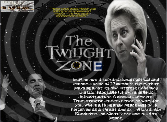Φανταστεῖτε τώρα μία ὑπερεθνική πολιτική καί οἰκονομική ἕνωσιν ἀπό 27 κράτη-μέλη πού λειτουργεῖ ἐνάντια στά δικά της συμφέροντα βοηθώντας τίς ΗΠΑ νά σαμποτάρουν τήν δική τους ἐνεργειακή ὑποδομή. Μία δημοκρατία ὅπου οἱ ὑπερατλαντικοί ἡγέτες ἀποφασίζουν πολέμους γιά λογαριασμό σας.Ὅπου μία Οὐγγρική εἰρηνική ἀποστολή ἐκλαμβάνεται ὡς ἀπειλή καί ὁ ἐπ᾿ἀόριστον ἐξοπλισμός τῶν Οὐκρανῶν νεο-ναζί εἶναι ὁ μόνος δρόμος γιά τήν Εἱρήνη.