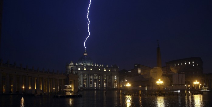 Δέος νιώθουν εκατομμύρια πιστοί σε όλο το κόσμο, ειδικά οι Καθολικοί, από ένα γεγονός το οποίο φυσικά θα μπορούσε να είναι και τυχαίο, αλλά πόσο, πια, τυχαίο; Μόλις Πάπας Βενέδικτος, ο ηγέτης της Καθολικής Εκκλησίας και σίγουρα ο ισχυρότερος "αξιωματούχος" - Άγιος κατά τους Καθολικούς - του Χριστιανισμού, ανακοίνωσε την παραίτησή τους, ως κοινός θνητός, οι ουρανοί άνοιξαν και φωτιά πετάχθηκε μέσα από τα σύννεφα.